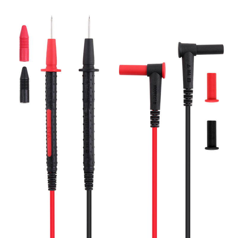 ETA4360-P 測(cè)試表筆采用銅鍍鎳測(cè)針,測(cè)針表面光亮直徑2mm,棒體注塑硅膠防滑設(shè)計(jì)手感舒適,4mm標(biāo)準(zhǔn)香蕉插頭兼容市場(chǎng)上主流的國(guó)產(chǎn)及進(jìn)口萬(wàn)用表、鉗表等具有4mm插孔的儀器儀表;表筆插頭與萬(wàn)用表連接吻合緊密,插上后不易脫落,很難拔出;插拔強(qiáng)度經(jīng)過(guò)嚴(yán)格測(cè)試,采用十字花瓣結(jié)構(gòu),導(dǎo)通和可靠性?xún)?yōu)良,擁有強(qiáng)勁的超過(guò)載電流能力。