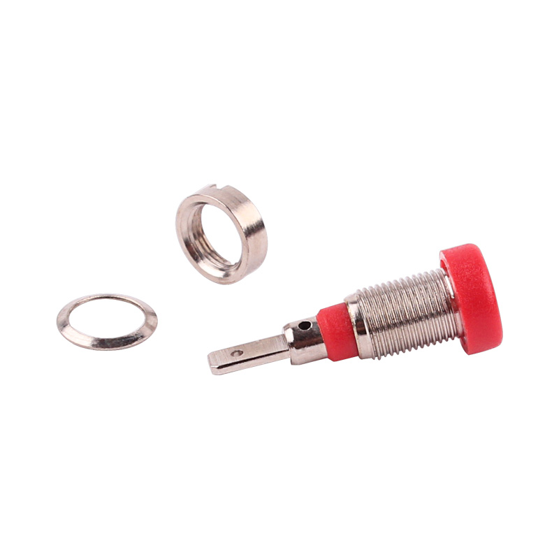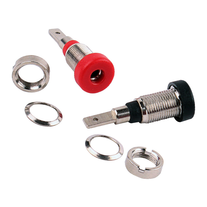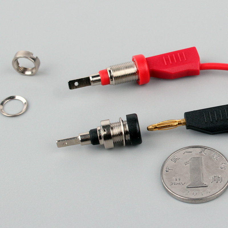 純銅鍍鎳嵌入式2mm輸入端子,采用金屬螺帽直接在面板進(jìn)行固定,耐高溫尼龍塑料,尾端建議使用插片連接。