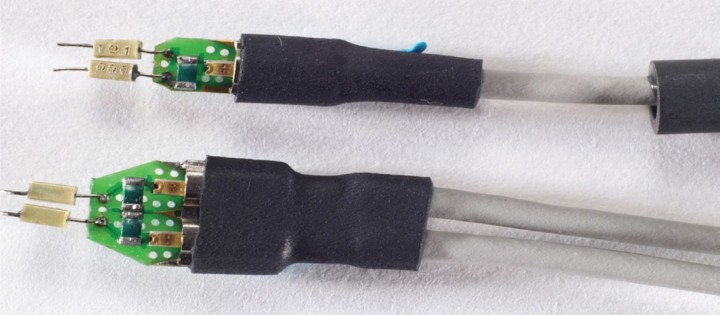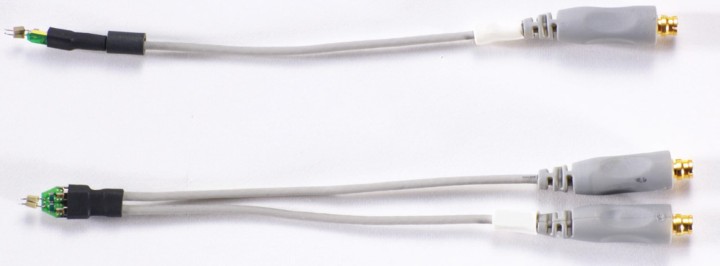 我們用簡化模型 ( 圖 1) 幫助比較,并用探頭放大器配合焊入式差分探頭前端和焊入式單端探頭前端測量數(shù)據(jù)。這兩種探頭前端的物理連接尺寸非常接近,因此它們的性能差別主要是因為差分和單端電路元件的布局造成的。圖 2 和圖 3 是這些探頭的照片。