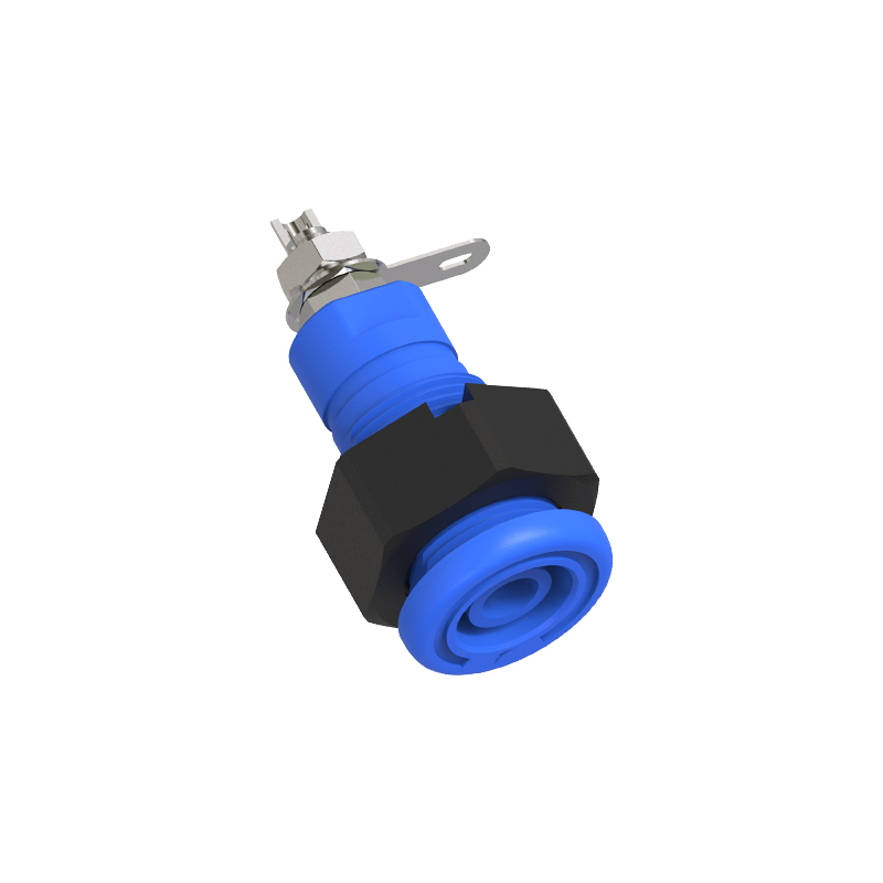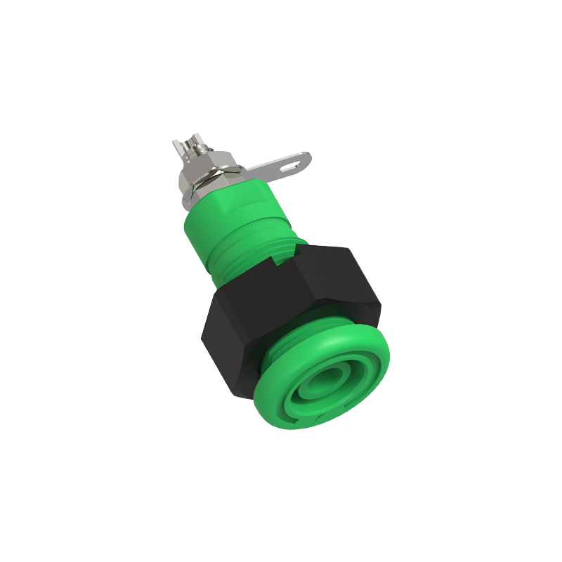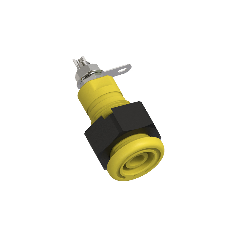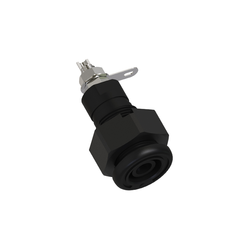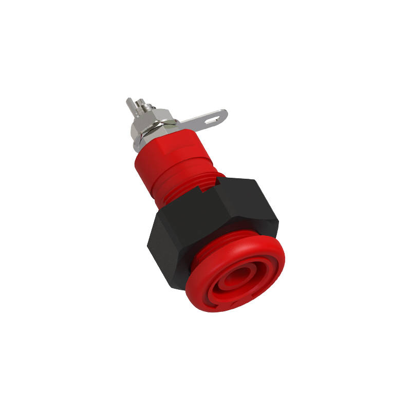 ETA3306A 4mm嵌入式面板插座,使用插簧端子連接,帶剛性絕緣套管,插座用塑料螺母,固定到面板由塑料、金屬等材料制成預(yù)鉆孔面板中。