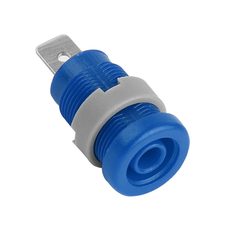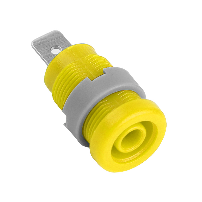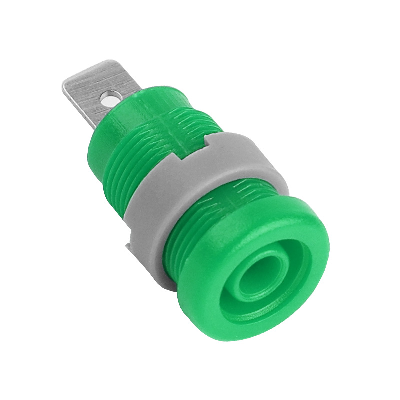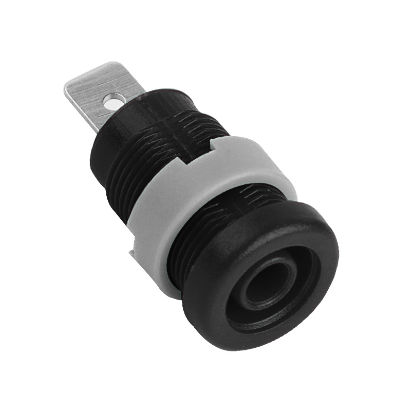 純銅鍍鎳嵌入式4mm輸入端子,采用塑料螺帽直接在面板進行固定,耐高溫尼龍塑料,尾端建議使用插簧連接。
