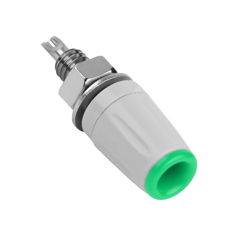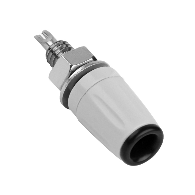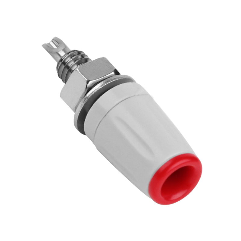 純銅鍍鎳嵌入式4mm輸入端子,采用金屬螺帽直接在面板進(jìn)行固定,耐高溫尼龍塑料,尾端可焊接。